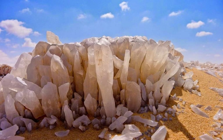 After breakfast, proceed to visit the Black Desert and the natural hot springs of El Haize Valley and then proceed to to see the quartz crystal at Crystal Mountain and the Crystal Mountain rock formations in the Valley of Agabat. Continue to White Desert National Park, Egypt’s most famous desert destination, and with good reason. The number of other worldly and beautiful rock formations carved by the wind into the shape of mushrooms or pebbles cannot be found in any desert in the world. Then return to Al Haiz camp for the night.